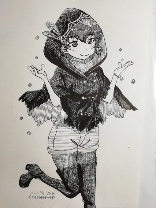 #mow版深夜のお絵描き60分一本勝負 #mow版深夜のお絵描き60分一本勝負_20220110 お題「カエサル」 戦車道大作戦のひなちゃん私服のたかちゃんです #カエサル生誕祭2022 #カエサル生誕祭 ギリギリでした