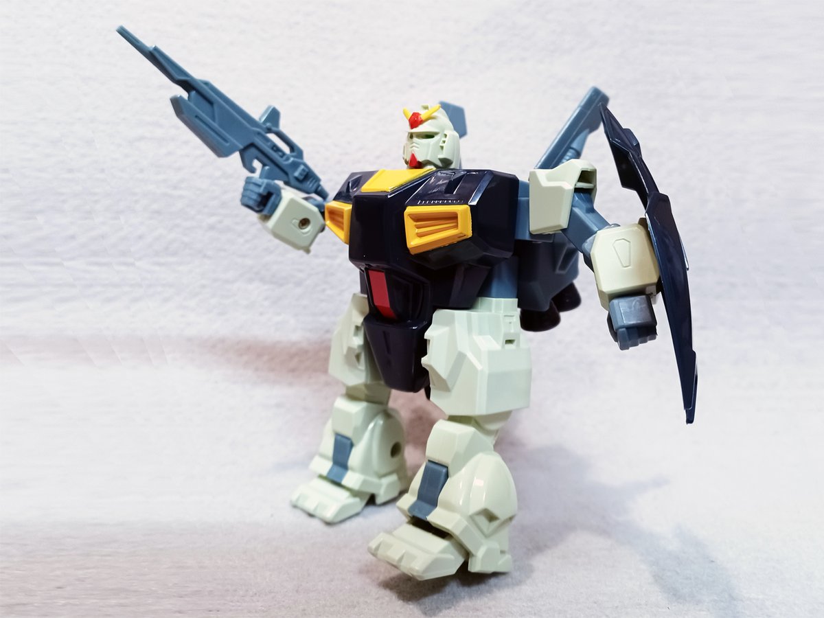 #カミーユ・ビダン生誕祭2022 数ある今日の記念日ネタでこれを出すのもどうかと思ったがこういうネタでもない限り遊ぶことはそうそう訪れないと考えてバンダイ製「ひょうきんもびるすーつ」ガンダム・マークⅡ(以下すべて表記は本製品準拠)を取り出そう。 独特の体型をしているけれど (直) ※続く