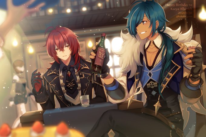 Toast!🥂 I love my C6 Kaeya! Happy Birthday! Looking forward to the story of your hometown🧊 #原神 #Kaeya #ガイア #ガイア生誕祭2021 #ガイア・アルベリヒ生誕祭2021 #GenshinImpact #ディルック #Diluc