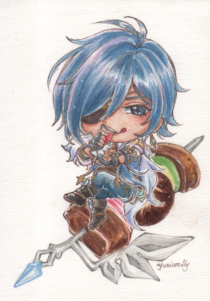 sooo late but i wanted to draw something for cavalry captain #Kaeya 's birthday! 😭💙 yes sir ill gladly drink wine with you 🍷✨ #ガイア生誕祭2021