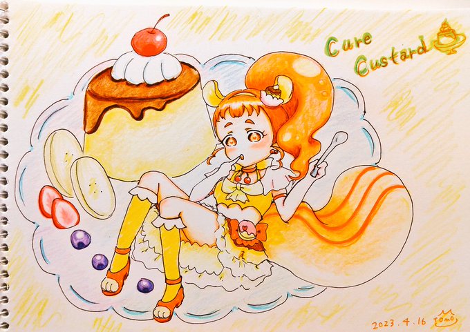#キュアカスタード生誕祭 #キュアカスタード生誕祭2023 #キュアカスタード誕生祭2023 ひまりんおたおめ🎉🎁🍮💐 プリンアラモードみたいな感じにしてみた。フルーツ少ないけど😂 実は初描きー!! スイーツは科学です❣️ #precure #プリアラ #キュアカスタード #アナログ絵