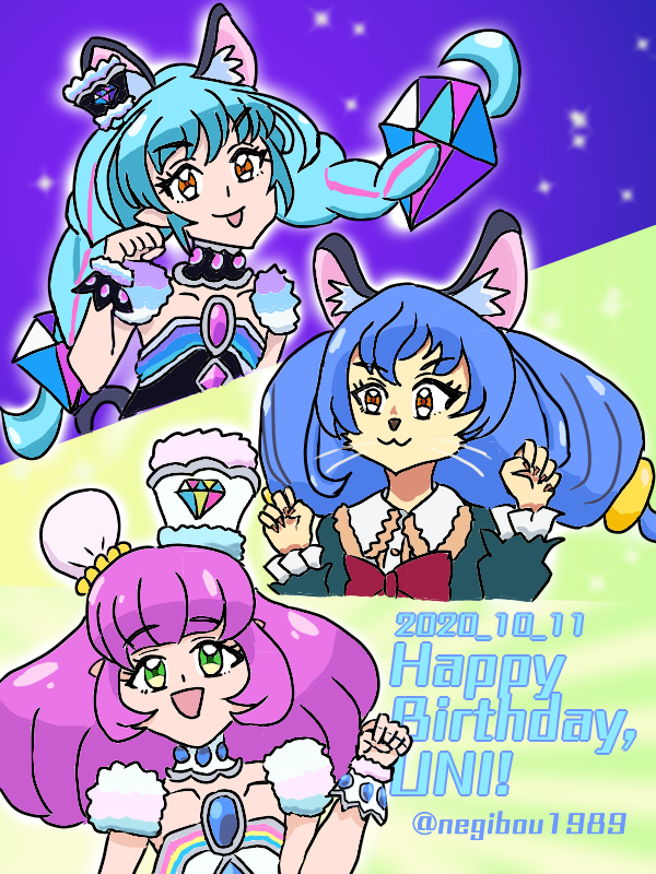 ユニ、キュアコスモ、ブルーキャットお誕生日おめでとーん!🦀ドン・オクトーかっこよすぎるな…あとマオはちょっと素材不足で…すまぬ…そして過去絵加工はクセになってしまうま🦓 #プリキュア #ユニ生誕祭2021 #キュアコスモ生誕祭2021