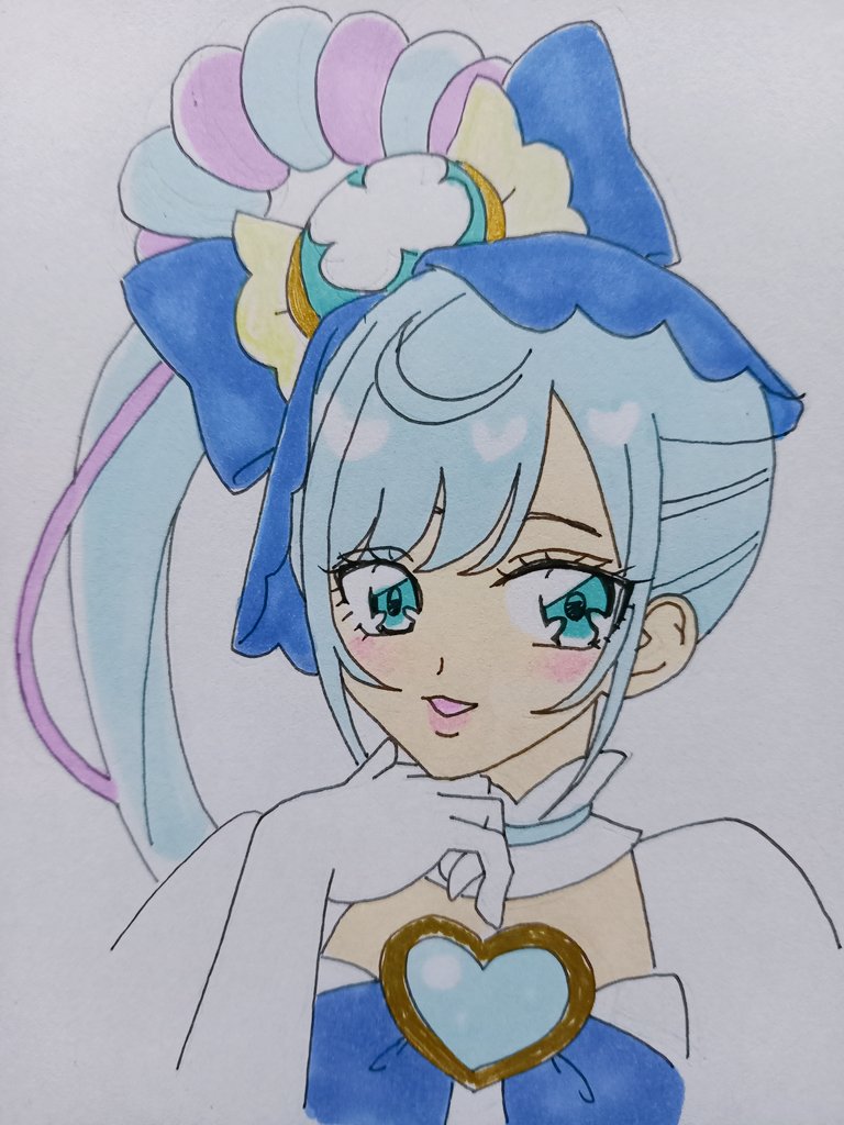 #プリキュア版深夜の真剣お絵描き60分一本勝負 #キュアスパイシー誕生祭2023 遅刻参加で30分オーバーしました… お題「青色のプリキュア 」からキュアスパイシーを。 ここねちゃんお誕生日おめでとう💙