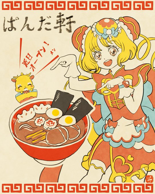 新規絵描く時間無いのでとりあえず過去絵で😭😭 らんらんお誕生日おめでとう〜!!!🍜🍥🐼🎉💛🧡💛🧡 自分のお店や食べ物への情熱が人一倍熱いらんらんが大好き🥰🥰 これからも自分の好きを貫いていってほしい🫰🏻💞💞 #キュアヤムヤム生誕祭2022
