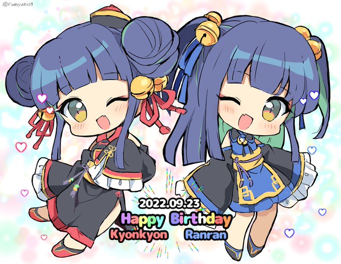 #邪神ちゃんドロップキック #キョンキョン生誕祭 #ランラン生誕祭 #キョンキョンランラン生誕祭2022 とっても可愛いキョンシーの双子姉妹!お姉ちゃんは🐼。早く人間になりたい! お誕生日おめでとうございます🥳 超特急で描いた!