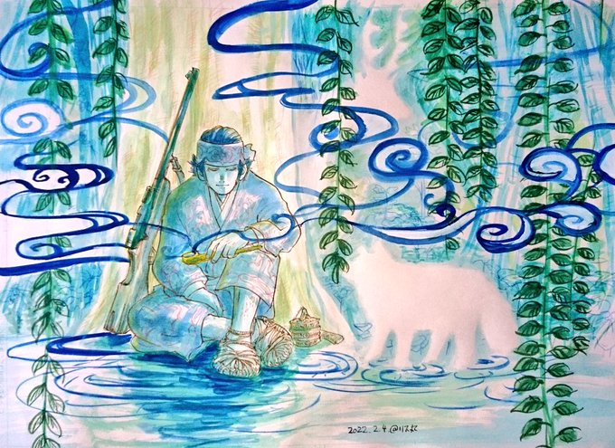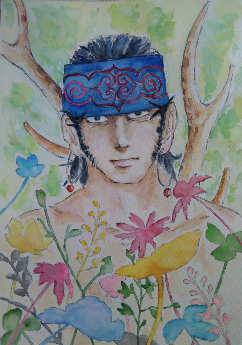 なんか思い通りの仕上がりじゃないんだなぁ💦でもキラウシ、生まれてきてくれてありがとう✨😆お誕生日おめでとう🎂🎊🎉 あなたと門倉のコンビが、私を沼に沈めました❤とりあえずタイトルは「美しき鹿の王」なんてね✨ #キラウシ誕生祭2022 #キラウシ生誕祭2022 #金カムアナログイラスト部