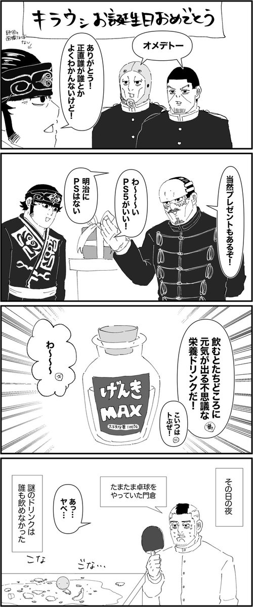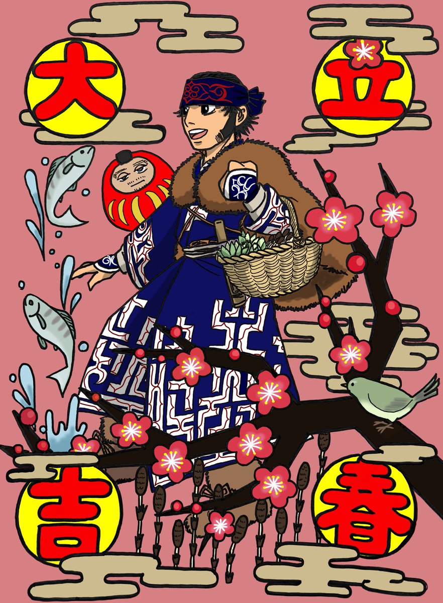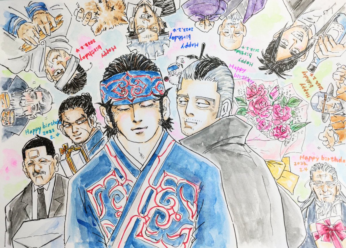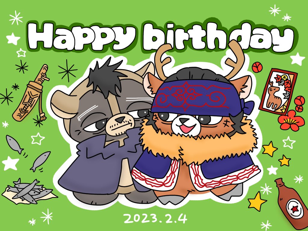 ホントはマンガ描きたかったけど。その上間に合ってないけど。寒い時期生まれのキラウシ、あったかくして美味しいものたくさん食べてね!おめでとうございます✨ #キラウシ誕生祭2023 #金カムアナログイラスト部