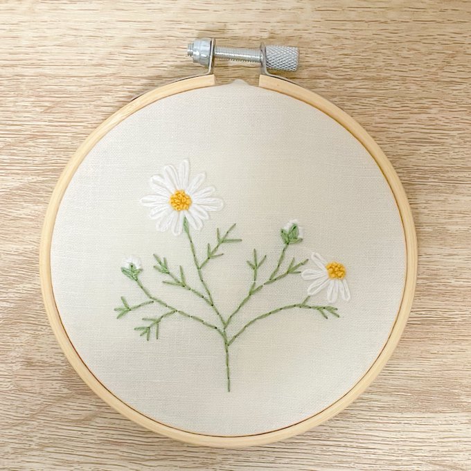 クリスお誕生日おめでとう! クリスの誕生花、カモミールの刺繍です 一見可憐な花ですが、花言葉は『逆境で生まれる力』 悔しさの火はまだ何度でも燃え盛ると言った彼にふさわしい花だと思って刺繍しました #クリストフ・ジャコメッティ誕生祭2022 #クリストフ・ジャコメッティ生誕祭2022