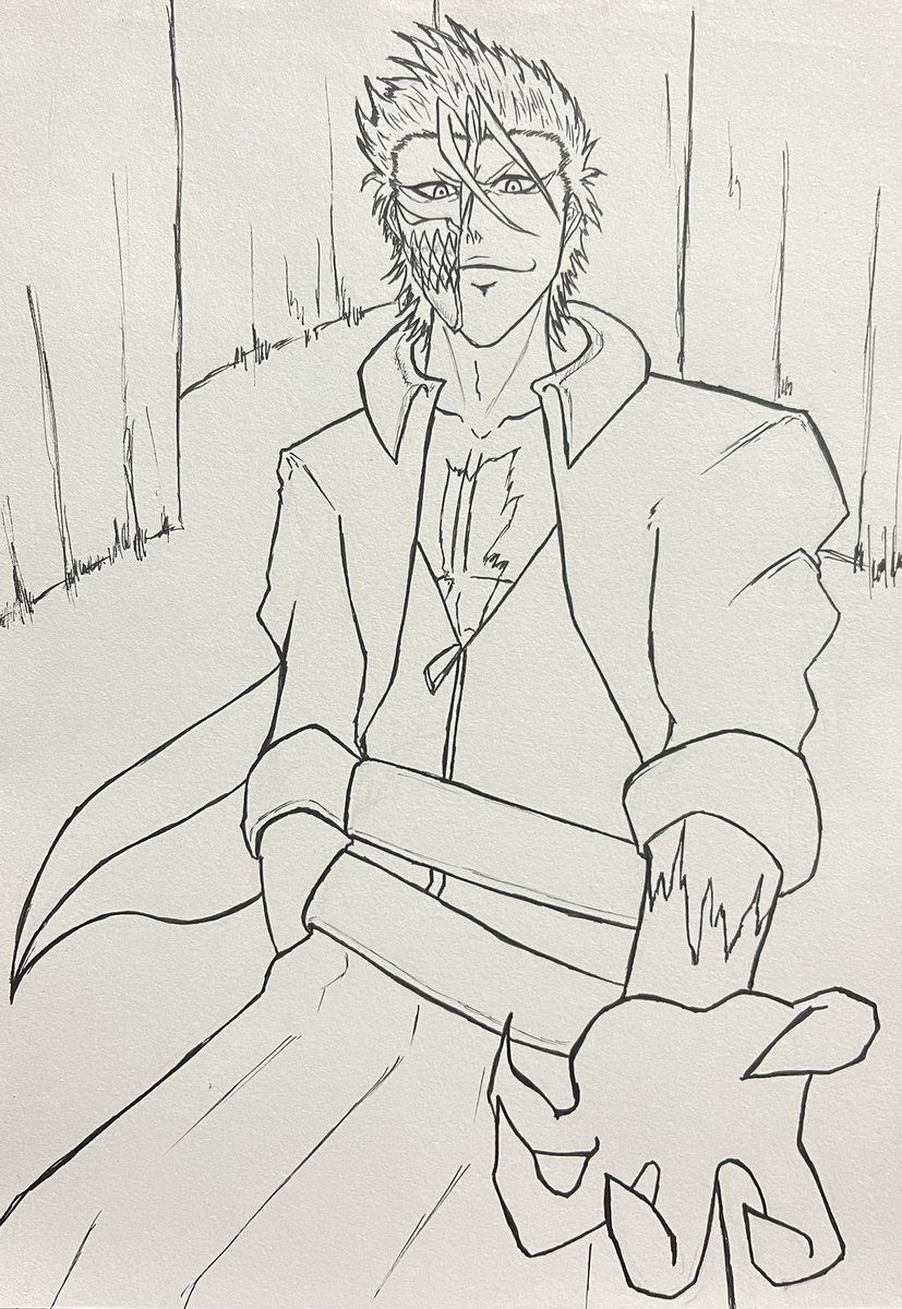 めっちゃ遅れたけど(毎回w) グリムジョーおめでとう㊗️🎉🎊 久しぶりにアナログ線画した🥺 何気にグリムジョー描くの初めてだな🤔 #イラスト #BLEACH #グリムジョー生誕祭2022 #グリムジョー誕生祭2022