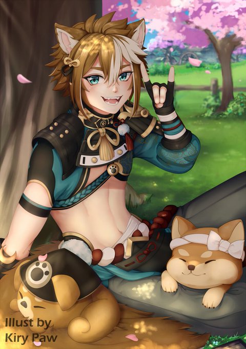 Gorou & Miss Hina 🐾 Happy Birthday Gorou! 🎉🐾 #ゴロー生誕祭2022 #gorou #goroufanart #MissHina #GenshinImpact