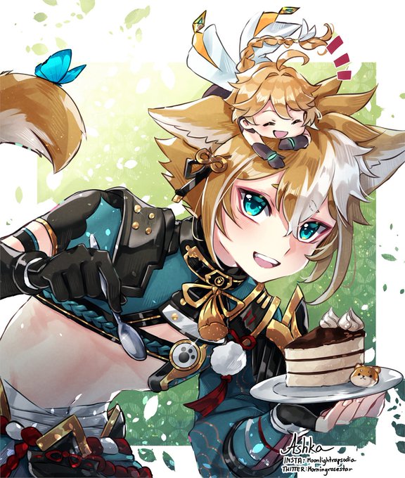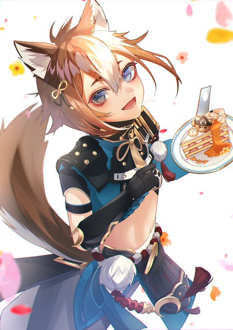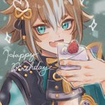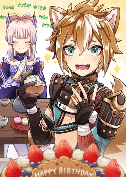 ゴローちゃんお誕生日おめでとう〜!!🎉🎂✨ 絵の中でならたらふく甘い物を食べさせてあげられる...😭 #ゴロー生誕祭2022 #Gorou #GenshinImapct #原神 #五郎