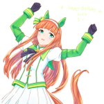 背景とかもろもろ描けてないんですけど、初うまぴょいを捧げたウマ娘を祝わないわけにはいかない…!おめでとう、スズカ先輩! #ウマ娘 #サイレンススズカ #サイレンススズカ生誕祭2022