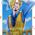 It’s Sanji’s birthday already in some parts of the world so happy birthday to him 💙🍳🍽️✨💛 #SanjiWeek2023 #サンジ誕生祭2023 #ONEPIECE