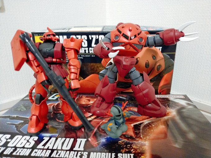 #シャア・アズナブル生誕祭2022 うちの子でシャアの機体はコレだけ💕 #ガンプラ #ガンプラ好きとつながりたい #ガンプラの画像を貼るとRTされると聞いて RGサザビーとオリジナルのシャアザク☺️