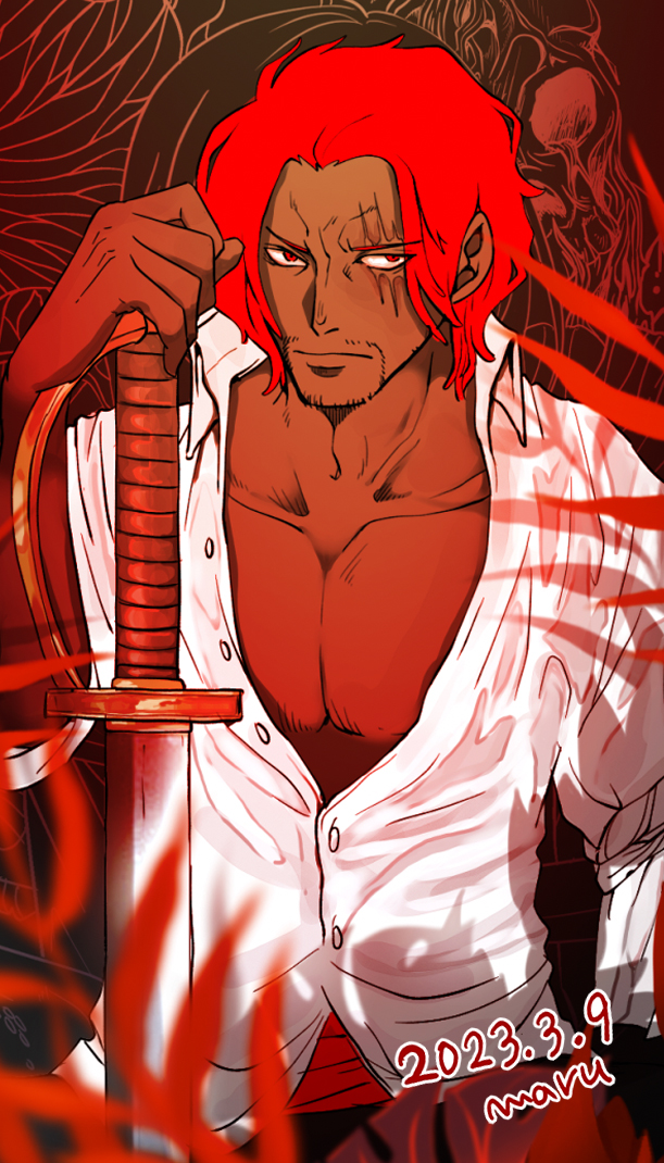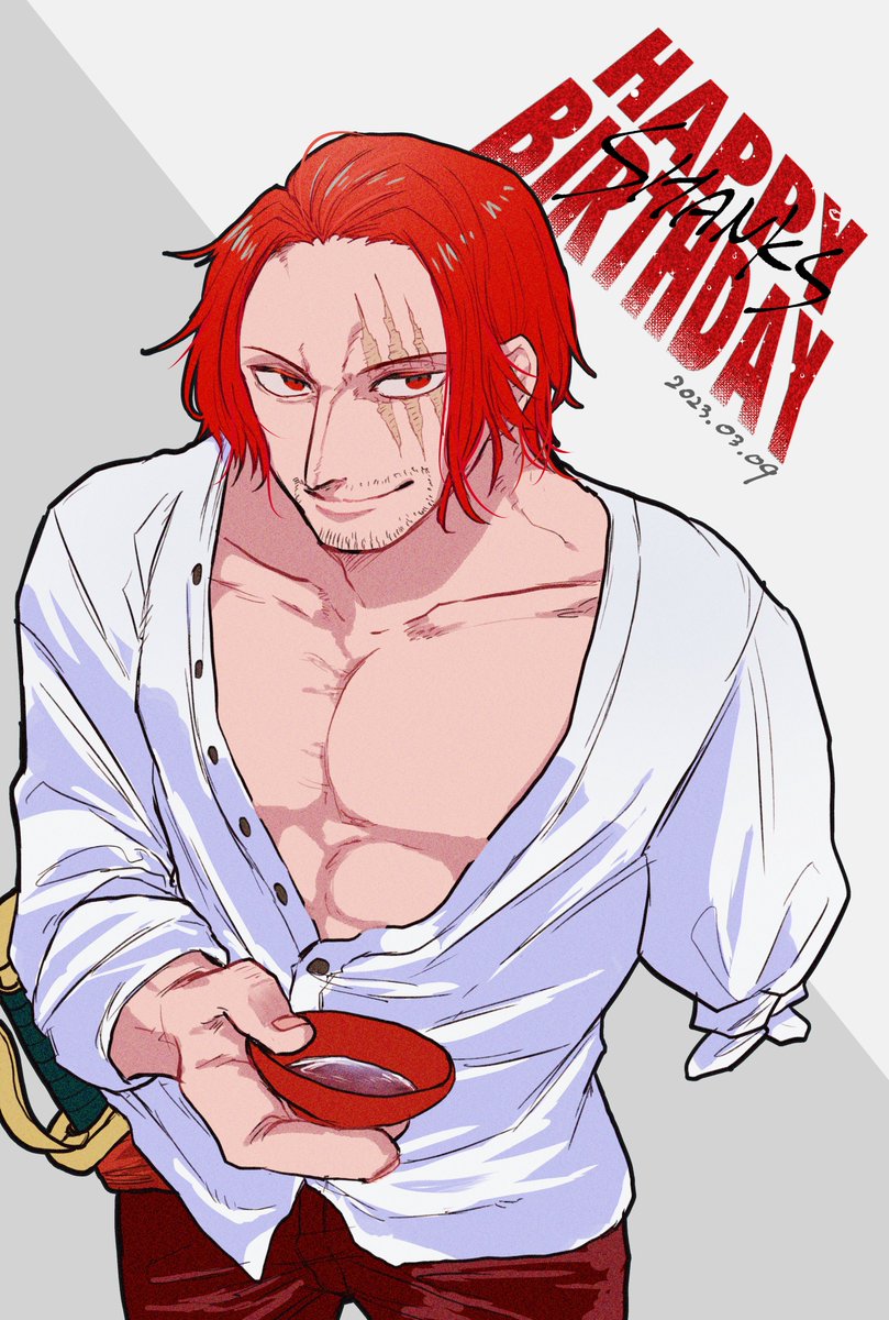 シャンクス誕生日おめでとう🎂🎉✨ずっと推してるのでこれからの活躍が楽しみ!今日一日みんなと呑んだくれてたらいいな…😊 #シャンクス誕生祭2023 #シャンクス生誕祭2023 #ワンピース #ONEPIECE #FILMRED #Onepiecefanart