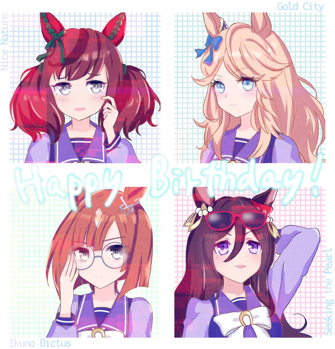 🎉 Happy Birthday 🎉 #ゴールドシチー生誕祭2022 #イクノディクタス生誕祭2022 #ナイスネイチャ生誕祭2022 #シーキングザパール生誕祭2022 #ウマ娘 #イラスト