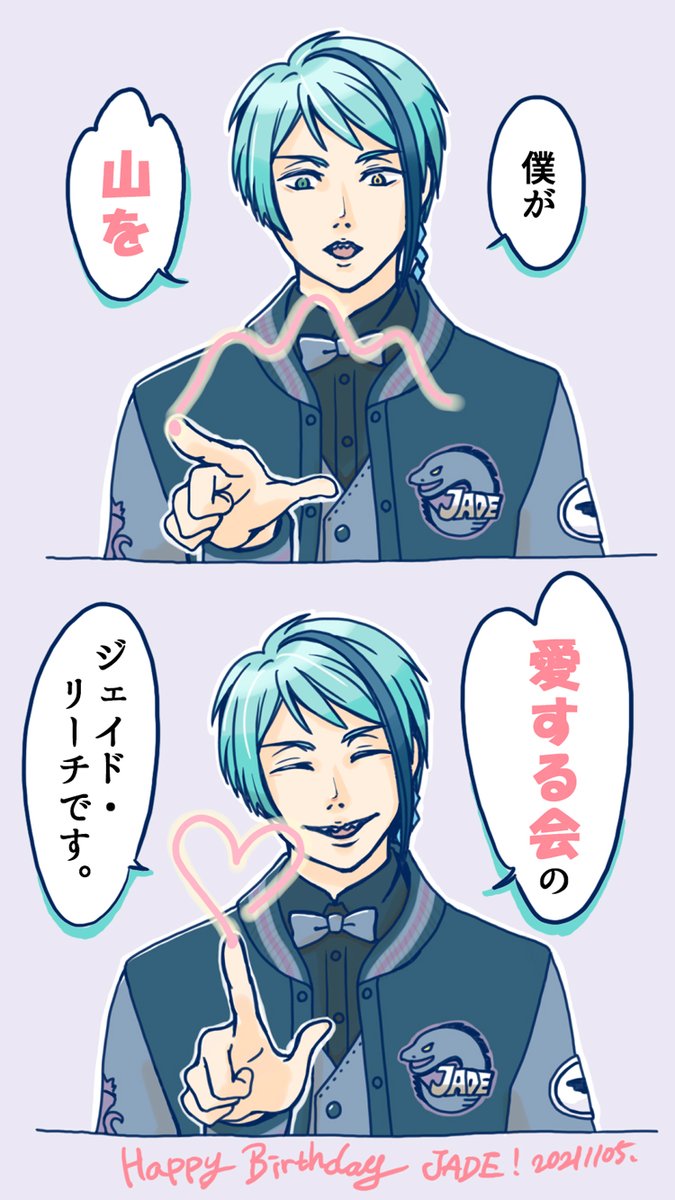 #ジェイド・リーチ誕生祭2021 #ジェイド・リーチ生誕祭2021 #twstファンアート 過去絵で申し訳ないよ!!!!!!! ハッピーバースデー!!!!!!! 山登り一緒に行くよ!!!! 山を愛してるあなたを愛してます!好きです!!!!!!!
