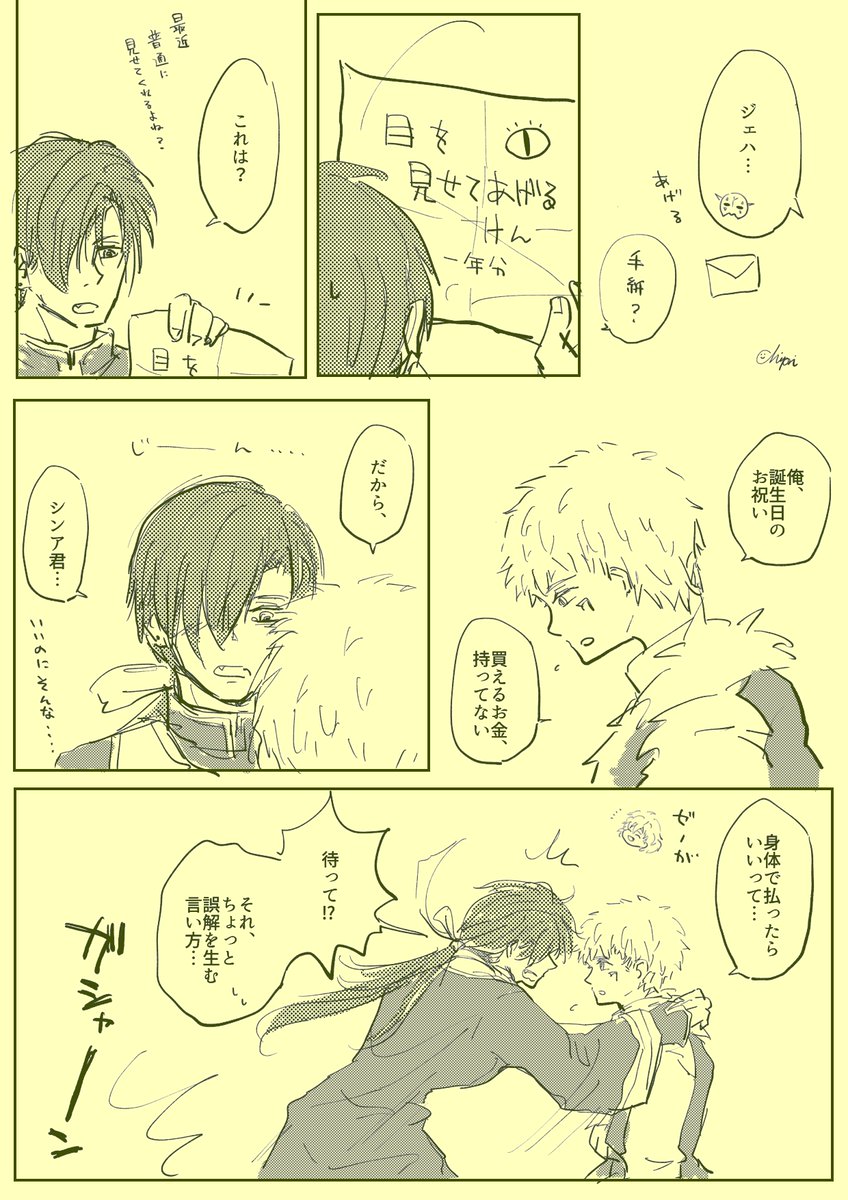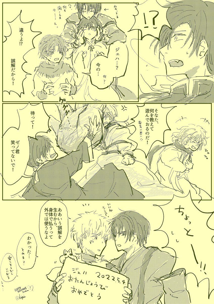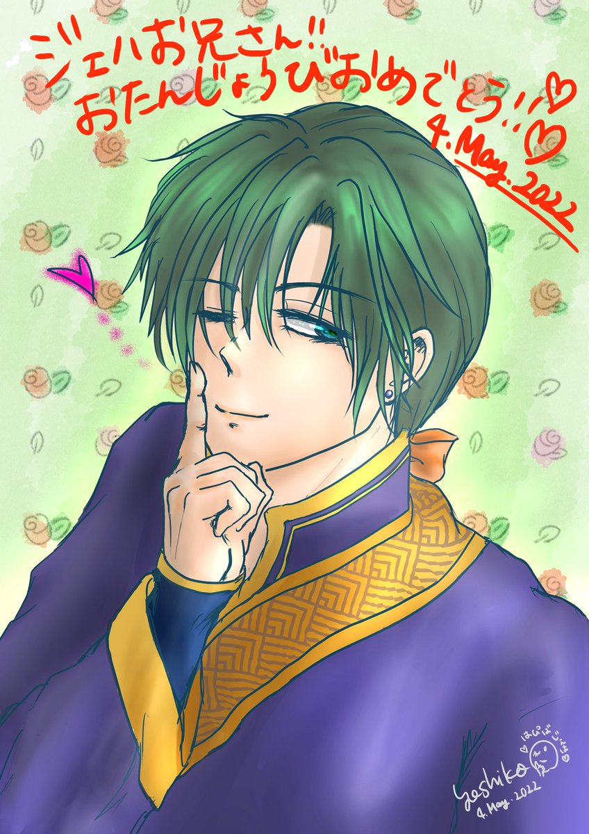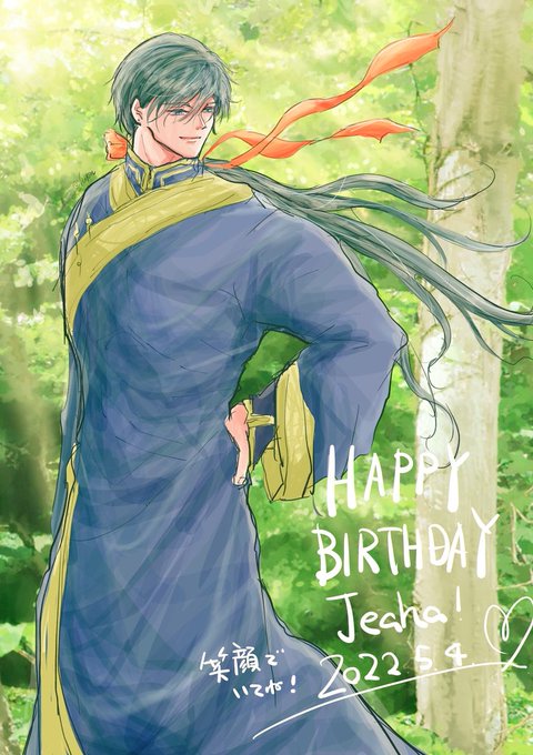 過去編で一回も笑ってなかったお兄さんがたくさん笑うようになってくれて嬉しいですお誕生日おめでとうございます🍶 自分の幸せより人の幸せ優先してたり今以上に望むことなんてないって思ってるところも好きだけどもっと幸せになってね… #ジェハ生誕祭2022 #ジェハ誕生祭2022 #暁のヨナ