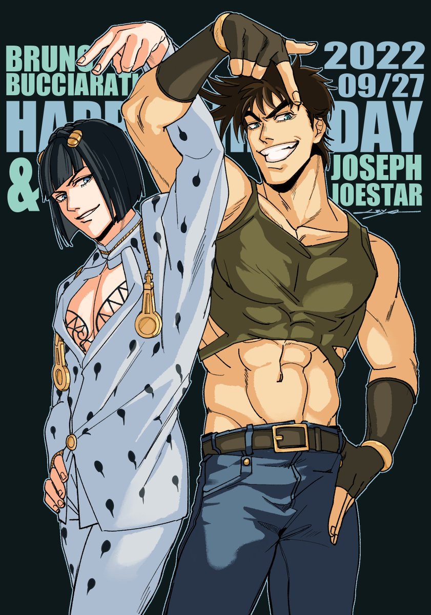 #ブローノ・ブチャラティ誕生祭2022 #ブローノ・ブチャラティ生誕祭2022 #ジョセフ・ジョースター誕生祭2022 #ジョセフ・ジョースター生誕祭2022 #一発描き #模写 描きたかったけどやっぱり過去絵w