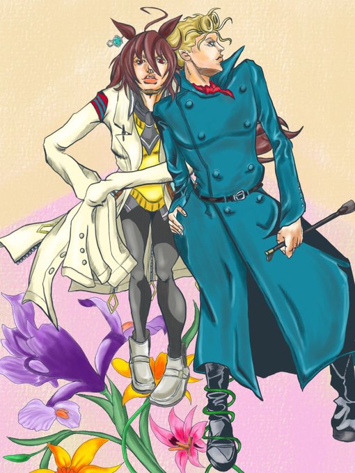 『ジョルノ、ジョッキーになる』 描きかけのアグネスタキオンがあったので、ツーショットにしてみました #ジョルノ・ジョバァーナ生誕祭2022 #ジョルノ・ジョバァーナ誕生祭2022 #ウマ娘 #ウマ娘プリティーダービー #イラスト #Twitter交流会会場 #皐月賞2022