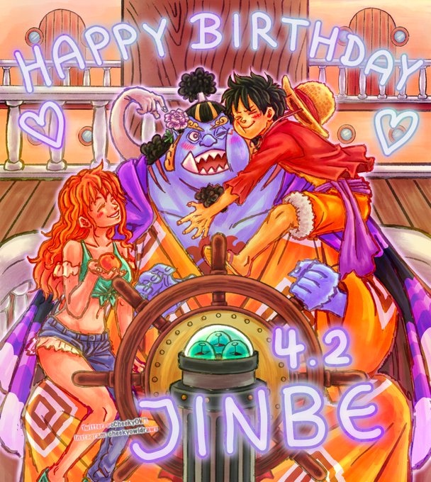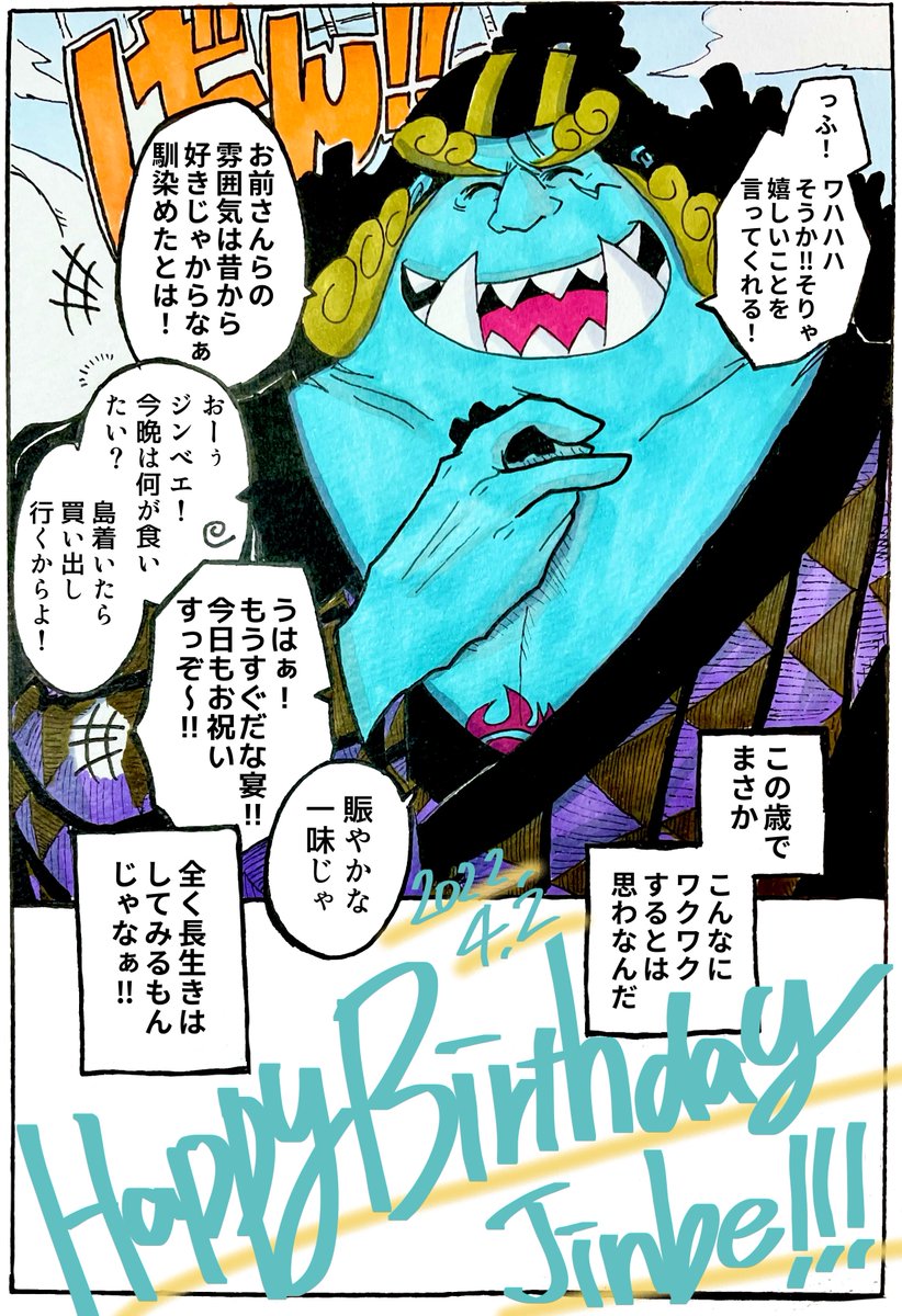 四月二日は“麦わらの一味”操舵手のジンベエ先輩の誕生日だべよ! 侠気あふれる先輩はあのビッグ・マムにすら臆しないべ! カッコイイだべよ〰〰〰!!!✨ 頼れる先輩にいつかお会いしたいべ‼️ 🎊お誕生日おめでとう ございます🎉 #ONEPIECE #ジンベエ誕生祭2022(先輩)