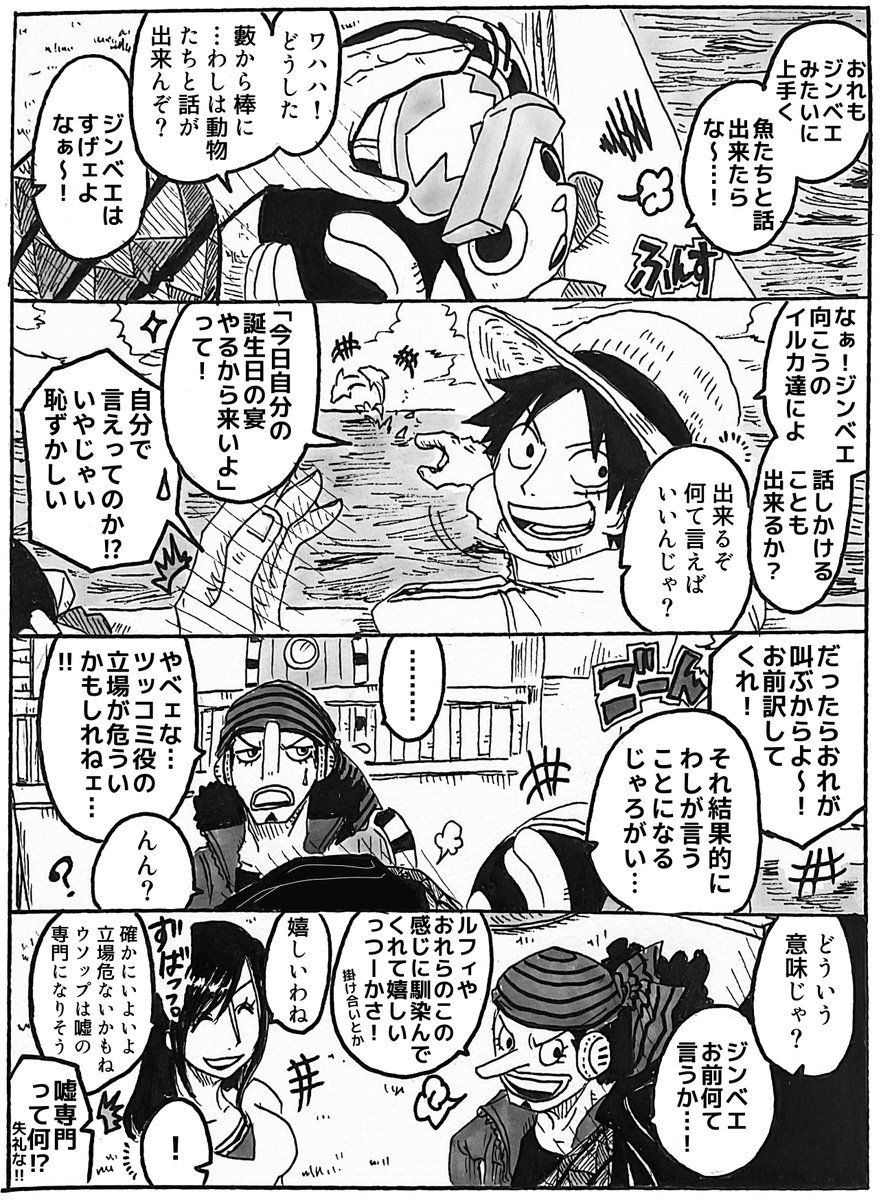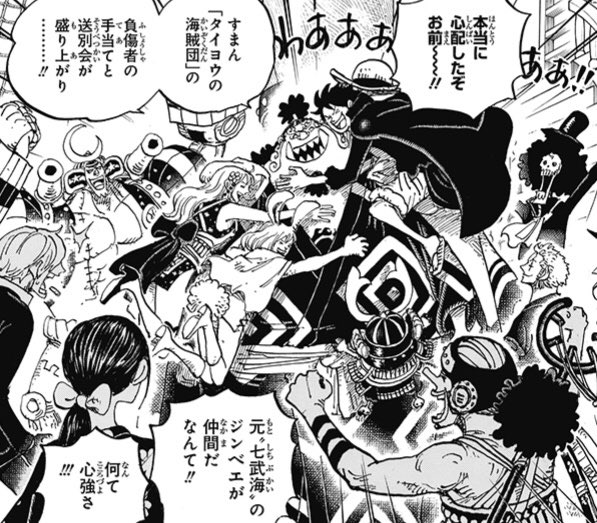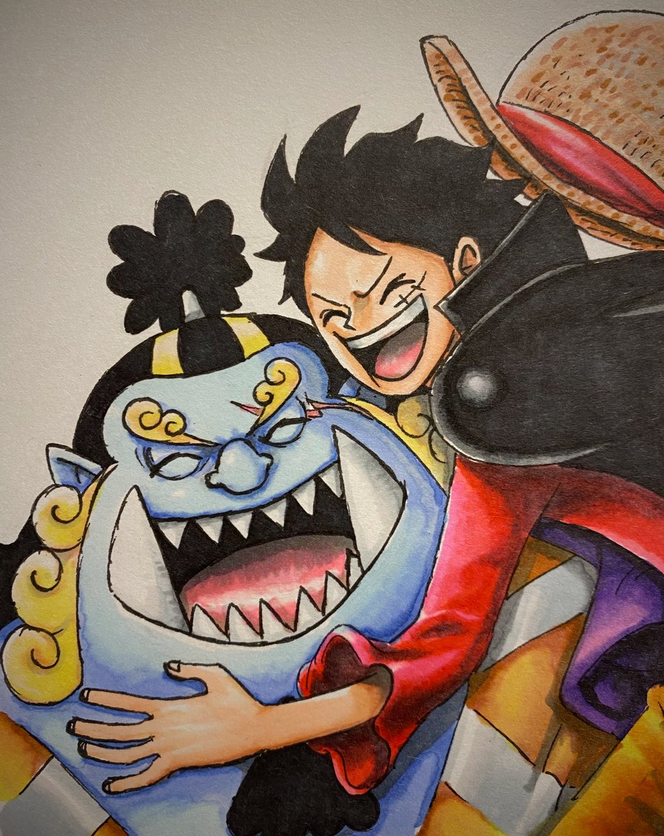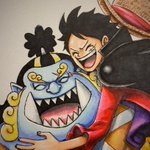 元船長と、船長。 その重圧を知るもの同士、この二人の間には他の仲間たちとはほんの少しだけ違う空気があるのかもしれない。 お誕生日おめでとうございます。 そして我らが船長をよろしくお願いします、親分! #ジンベエ誕生祭2022 #ジンベエ生誕祭2022