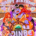 力づくで説得した時?血を分けあった時?操舵手として認められた時?きっと心の底から信頼して笑えた時にほんとの仲間になったのかなぁと思ったり! 今までで一番でっけェ宴、無事できますように😊頼れる親分に乾杯🍻 #ジンベエ誕生祭2022 #ジンベエ生誕祭2022 #ONEPIECE