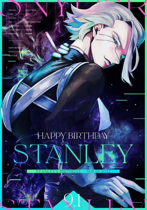 出遅れた!! スタンリーお誕生日おめでとう〜〜〜!!!!!!!めちゃくちゃ大好きだーーーー!!!!!!!!タバコ作れて良かったね…!🙏🙏😭😭😭😭😭👏👏👏というお祝い絵です #スタンリー・スナイダー誕生祭2022 #DrSTONEスタンリー誕生祭2022 #スタンリー誕生祭2022
