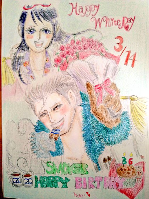 スモやんお誕生日おめでとう🎂 愛してます(*´³`*) ㄘゅ💕 再登場お待ちしております💗 出来ればたしぎちゃんと一緒に💗 色鉛筆描きなんで薄いから上げ直し💗 ごめんなさい💦 #スモーカー誕生祭2023 #スモーカー生誕祭2023