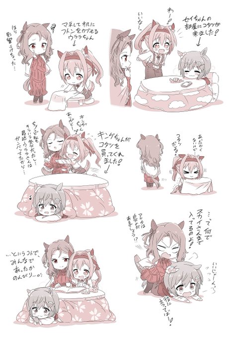 #キングヘイロー生誕祭2023 #セイウンスカイ生誕祭2023 「はい、キング、あーん」 「って!これ入り切らないサイズじゃ……モゴモゴ……」 「あははは!おめでとう、キング」 「あなたもね、スカイさん」 改めて2人ともおめでとう〜!!!!! #ウマ娘