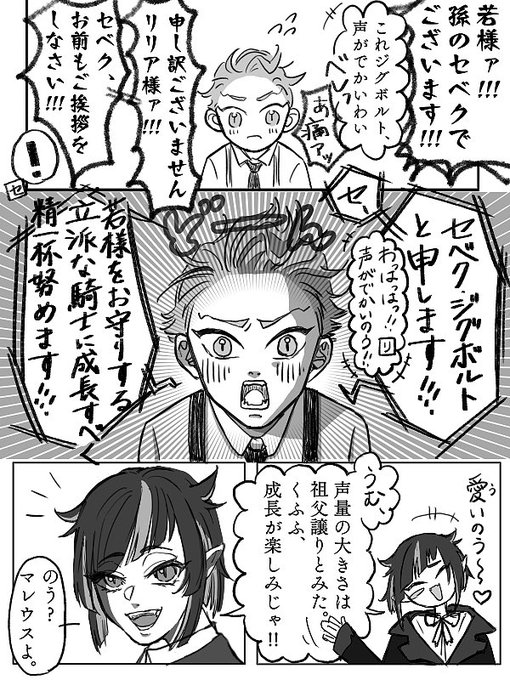 ⚡️は🐉と、こんなふうに出会ったかもしれない。 ※過去ねつ造 ※⚡️のじいじ(セリフだけ) How beautiful he is !! なんと美しいお方だ What an honor !! なんたる誉だろうか 遅刻だけど、おめでとうセベク🥳 #セベク・ジグボルト生誕祭2022 #twstファンアート #ツイステファンアート