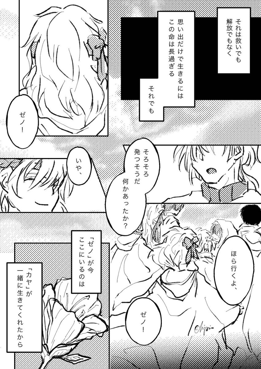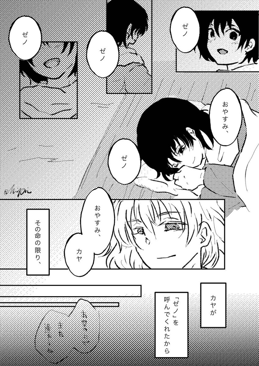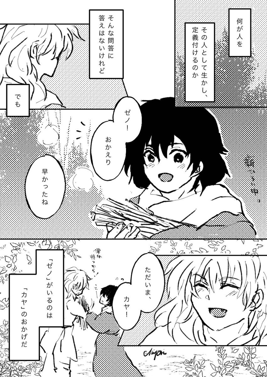 そしてゼノお誕生日おめでとうのゼノカヤちゃん漫画☺️ 救いではないけど、名前を覚えていることが二人生きていたことの証明であることは間違いないよねって🥲 #ゼノ誕生祭2022 #ゼノ生誕祭2022