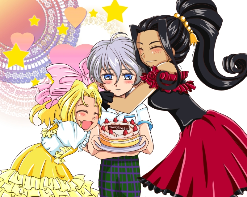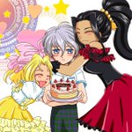 織姫誕生日おめでとう(過去絵) #ソレッタ・織姫誕生祭2023 #ソレッタ・織姫生誕祭2023 アイリスとの誕生日お祝いかねてる絵もあったなこれ 1枚目・織姫でミルキーウェイ 2枚目・アイリスと織姫にケーキ用意するレニ 3枚目・舞台の特典映像で判明した岡本さんと伊倉さんの会話(確か星を継ぐ)