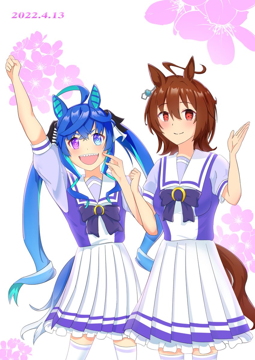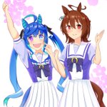 #ツインターボ生誕祭2022 #ツインターボ誕生祭2022 #アグネスタキオン生誕祭2022 #アグネスタキオン誕生祭2022 今日はツインターボとアグネスタキオンの誕生日です!! お誕生日おめでとうございます!!!!㊗️🎉🎊 好きな二人が同じ誕生日だったので同じ絵で描けてとても嬉しい☺️ おめでたい🥳