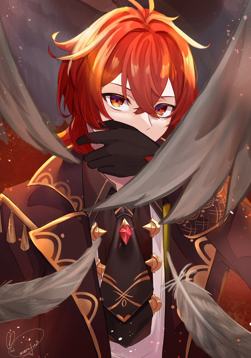 ディルックの旦那誕生日と聞いて初めて描いた 誕生日おめでとうございました 最近原神始めてモンド編クリアしてからじわじわ好きになったんでぶっちゃけ後で欲しい #ディルック誕生祭2022 #Diluc