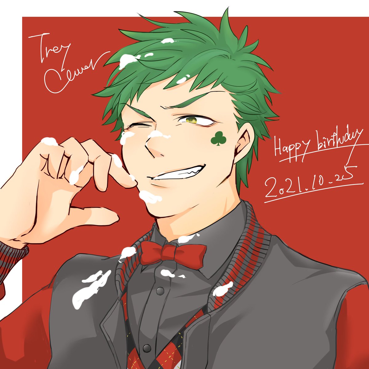 当日疲れすぎて忘れてた...当日にお祝いしてない...トレイ先輩誕生日おめでとうございます😊♥️🎂 ほんと一生推す...悪いお顔が好きなんや... (使い回しすまん...) #ツイステファンアート #トレイ・クローバー誕生祭2021 #トレイ・クローバー生誕祭2021