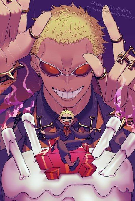 💗ドフィお誕生日おめでとう💗 今年もいっぱい大好き💕活躍が見られる日を楽しみにしてます✨ うちの小鳥もだんだん大きくなって、少しだけなら羽ばたけるように。 それでも、何度だって貴方のもとに舞い降りちゃうからね!🐥 #ドフラミンゴ誕生祭2022 #ドフラミンゴ生誕祭2022 (遅刻すみません💦)