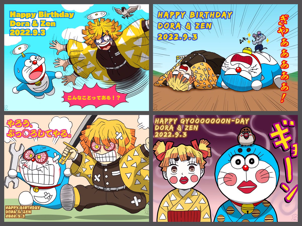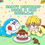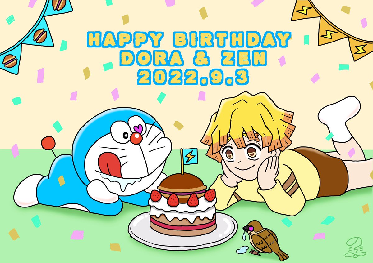 #ドラえもん生誕祭2022 #我妻善逸生誕祭2022 描けました〜‼️ 大好きな二人が同じ誕生日なんて✨✨ ドラちゃん、善逸、おめでとう〜!😆🎉🎉🎉 (カウントダウンで描いた5枚も添えて...😂)