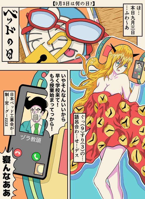 コスプレ好きなアラサー教師が今日が何の日か教えてくれるだけの漫画 #コスプレ暦辞典 「9月3日って何の日?」 #ベッドの日 #ドラえもん の誕生日 #ドラえもん誕生祭2021 #ドラえもん生誕祭2021 #漫画が読めるハッシュタグ #イラスト #創作漫画 #漫画 #コスプレ