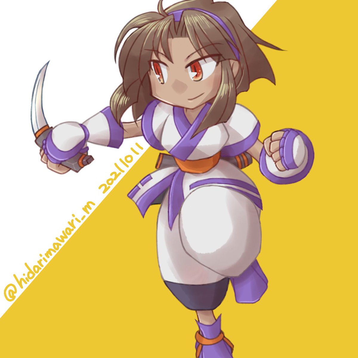 お待たせしました! お約束で紫ナコバージョンも用意したよ💜 左右反転かけてるけど顔の違いが分かるかな? 他にも違う所もあるので気になったら探してみてね😆 #ナコルル生誕祭 #ナコルル生誕祭2021 #格ゲーキャラ描こうぜ twitter.com/westmaison1/…