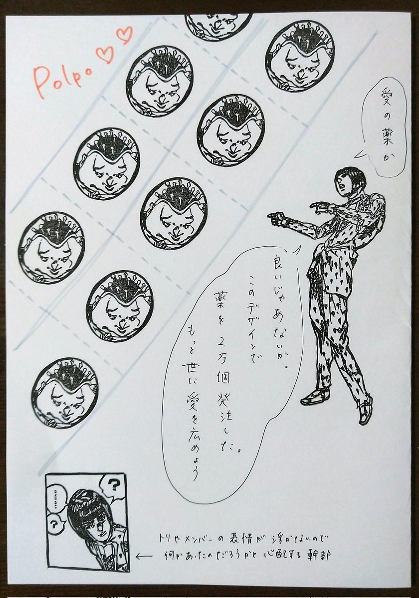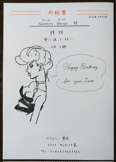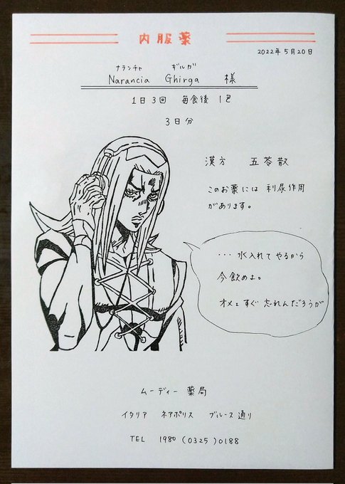 【ナラ誕⑤】 ナラには広い意味で大きな愛に包まれて幸せになって欲しいという、トリの願いから生まれた薬 ただ製薬についての一切をブチャに任せたことで大誤算が発生 この薬が今一番必要なのは彼女😂 #ナランチャ・ギルガ生誕祭2022 #ナランチャ・ギルガ誕生祭2022 #jjba #消しゴムはんこ