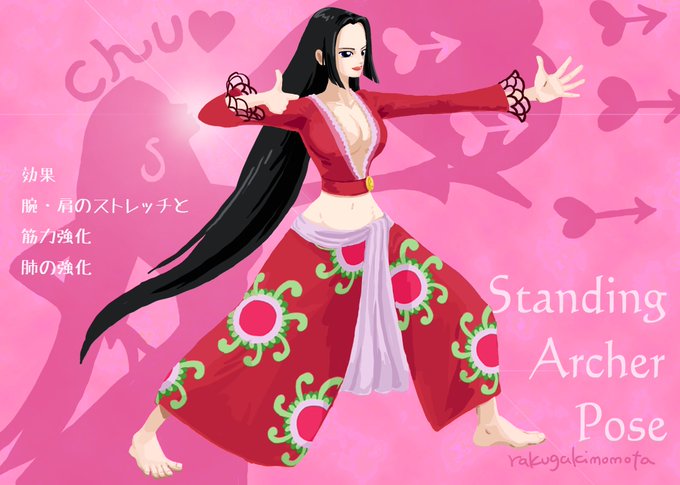 #ハンコック誕生祭2022 #スレイブアロー 美しさの虜にしてしまうハンコック様 本日のおうちヨガしませんか? #StandingArcherPose ハンコック様の矢に射抜かれたい人は~~??? #onepice #ヨガ #イラスト