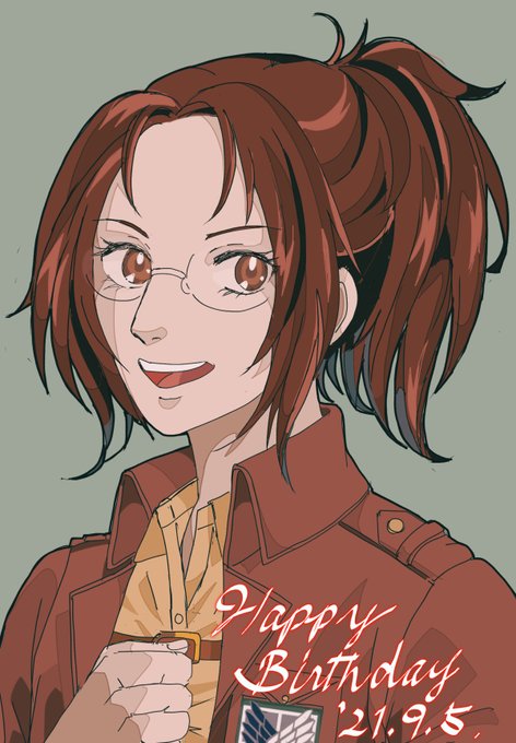 ハンジさんお誕生日おめでとうございます💐✨🎁✨🎂 優しく、勇敢で前を向くハンジさんずっと私の憧れです。(^^)❤️ #クソメガネ誕生祭2021 #ハンジ誕生祭2021 #ハンジ生誕祭2021