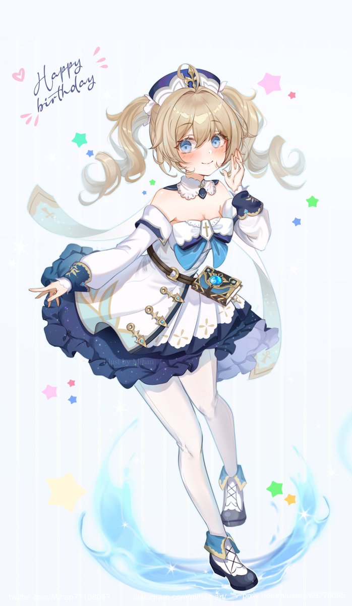 "Tada! Barbara is here~ Leave the healing to me, I will not disappoint you!" Happy Birthday to our darling deaconess, Barbara! ☆ ~('▽^人) #バーバラ生誕祭2022 #GenshinImpact #原神 Art by @rmmadedis and @phoneticryel ! 🫧🌟