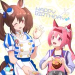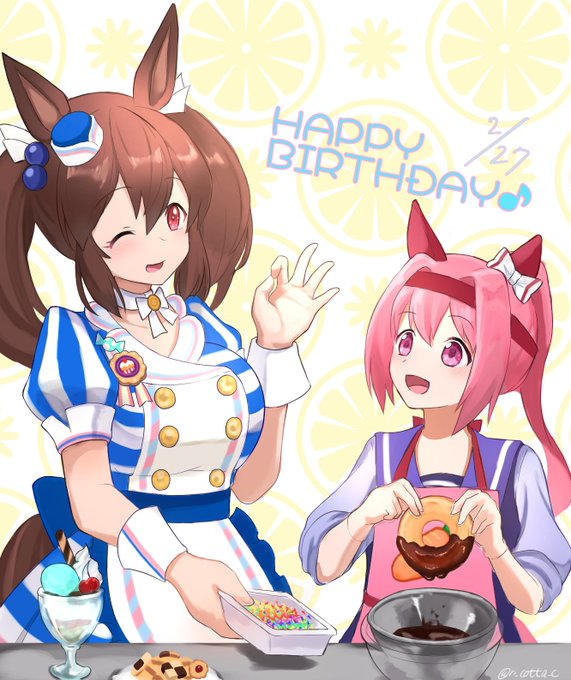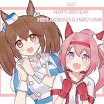 🌸「ぼーの?」 🍩「ボーノ!」 2/27お誕生日おめでとうございました…! #ウマ娘 #ハルウララ #ヒシアケボノ #ハルウララ生誕祭2022 #ヒシアケボノ生誕祭2022 #絵描きさんと繋がりたい