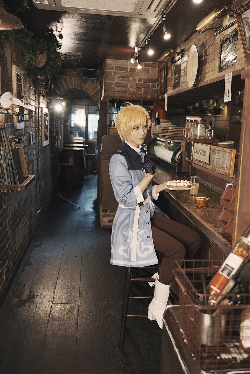 ヒースお誕生日おめでとうー! いっぱいいっぱい幸せになれー! 料理屋のお店に皆でいつか行って欲しいな photo:かわぐちさん(@k031077) レモンパイはミズホさん(@mizuho_es )作 #ヒースクリフ誕生祭2023 #まほやく_cos