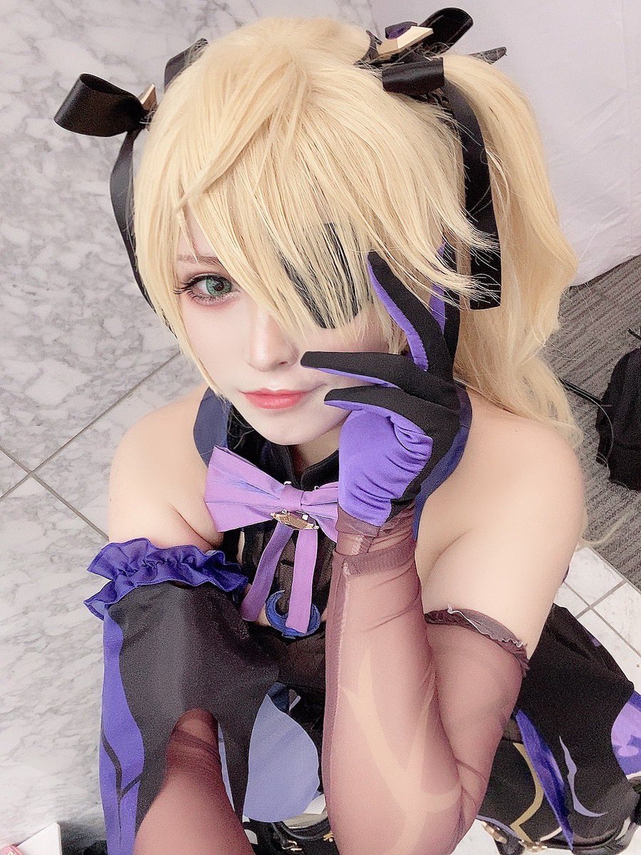 【コスプレ】 . 原神/フィッシュル⚡️fischl . お誕生日おめでとうございます🎂💜 . 本当にキャラデザが神!!ドストライク!!すこしでも近づけてたらいいな、、😌 . . #フィッシュル誕生祭2022 #フィッシュル生誕祭2022