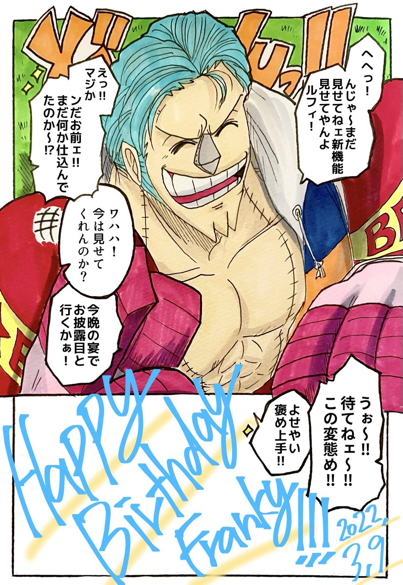 3/9フランキー誕生日 スーパーおめでとう~🎂🎉( ^-^)ノ∠※。.:*:・'°☆ #フランキー誕生祭2022 #フランキー生誕祭2022 #一味併せ #ONEPIECE #フランキー
