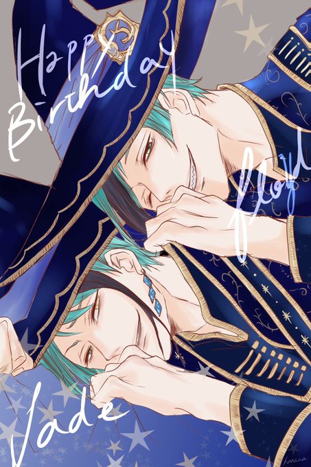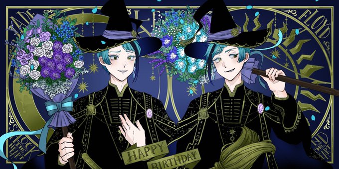 誕生日おめでとー! ちゃんと描いたからガチャで出てきてくれたのかな #twstファンアート #ツイステファンアート #ジェイド・リーチ誕生祭2022 #フロイド・リーチ生誕祭2022 #リーチ兄弟生誕祭2022