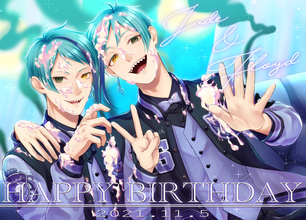 フロイド&ジェイドお誕生日おめでとう🎉 滅茶苦茶大遅刻にも程があるけど11月中はセーフという事で許して😭 #ジェイド・リーチ誕生祭2021 #フロイド・リーチ誕生祭2021 #リーチ兄弟誕生祭2021